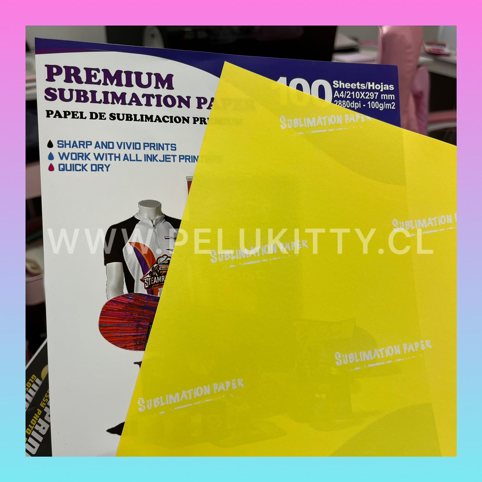 Papel de sublimación, 100 hojas, A4 / Reverso Amarillo